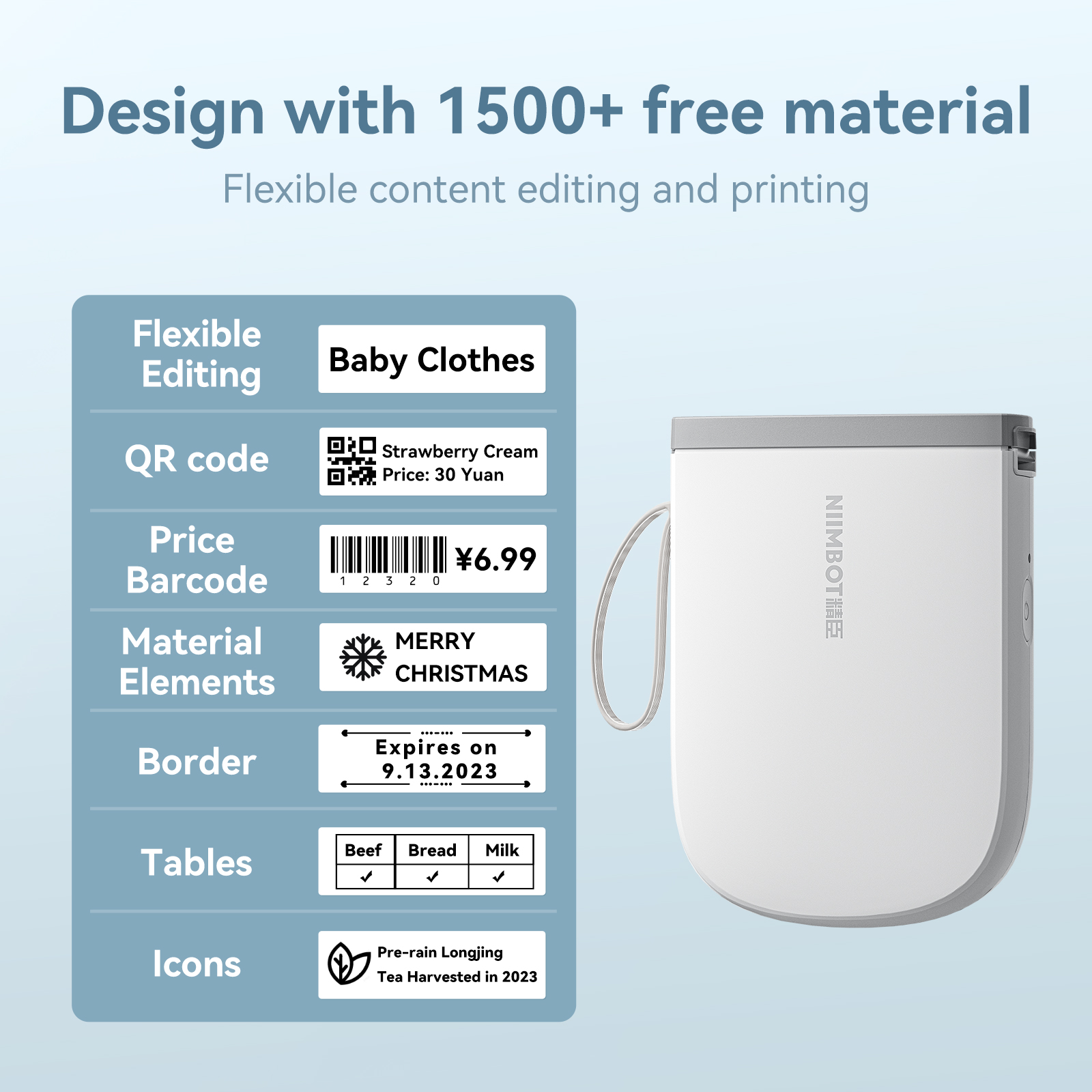 La Etiquetadora NIIMBOT D11-H Blanca es una impresora portátil con batería y Bluetooth, compatible con etiquetas de hasta 15 mm de ancho y resolución de 300 dpi